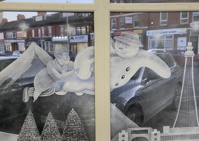 Christmas is, of course, the most popular time for these designs, when the snow window art truly comes into its own. Caroline offers flexible packages to suit both small and large spaces, making sure that everyone can enjoy a bit of festive magic. Whether you’re looking to bring a cosy, homely feel to your living room or draw attention to your business during the busiest shopping season, Caroline Ascroft’s snow window designs provide an enchanting and unforgettable way to celebrate the holidays.